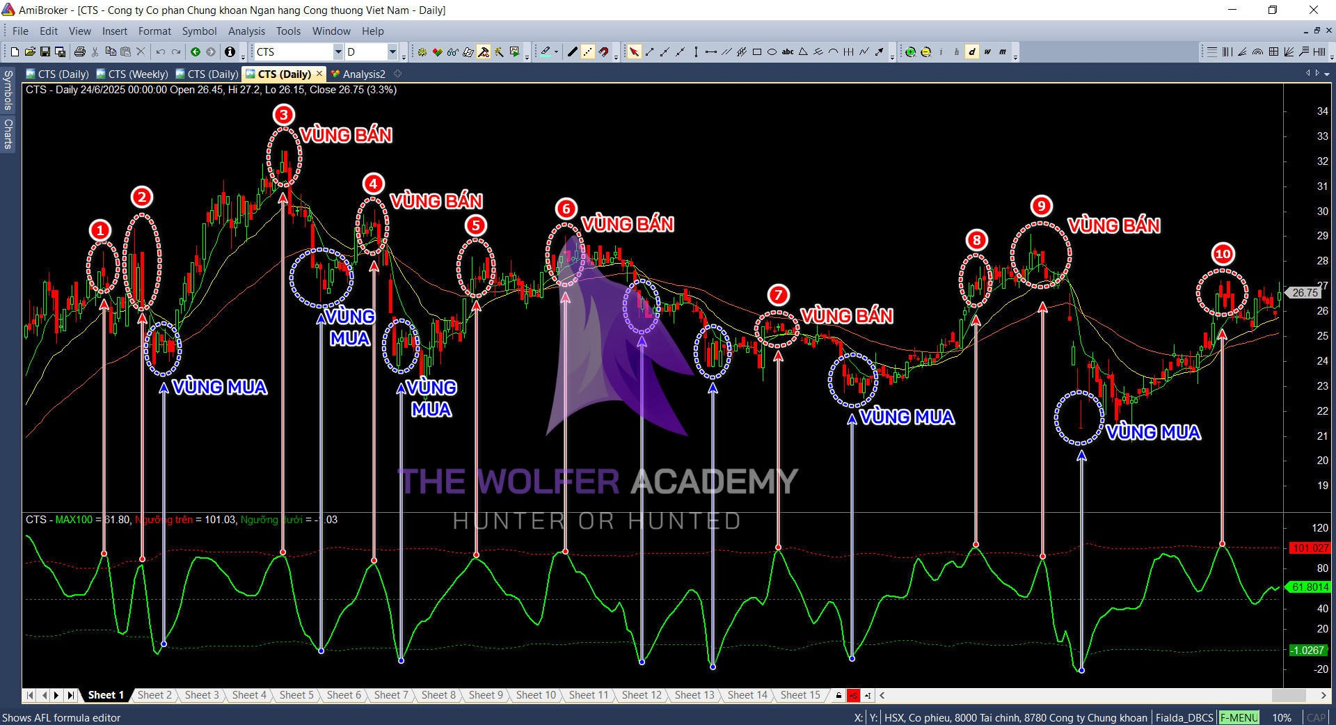 Chỉ báo MAX100 ra đời để giải quyết triệt để vấn đề này. Đây là một chỉ báo dao động động lượng, được thiết kế để tự động thích ứng với mọi điều kiện của thị trường. Mời nhà đầu tư xem bài giới thiệu và hướng dẫn sử dụng của The Wolfer Academy.