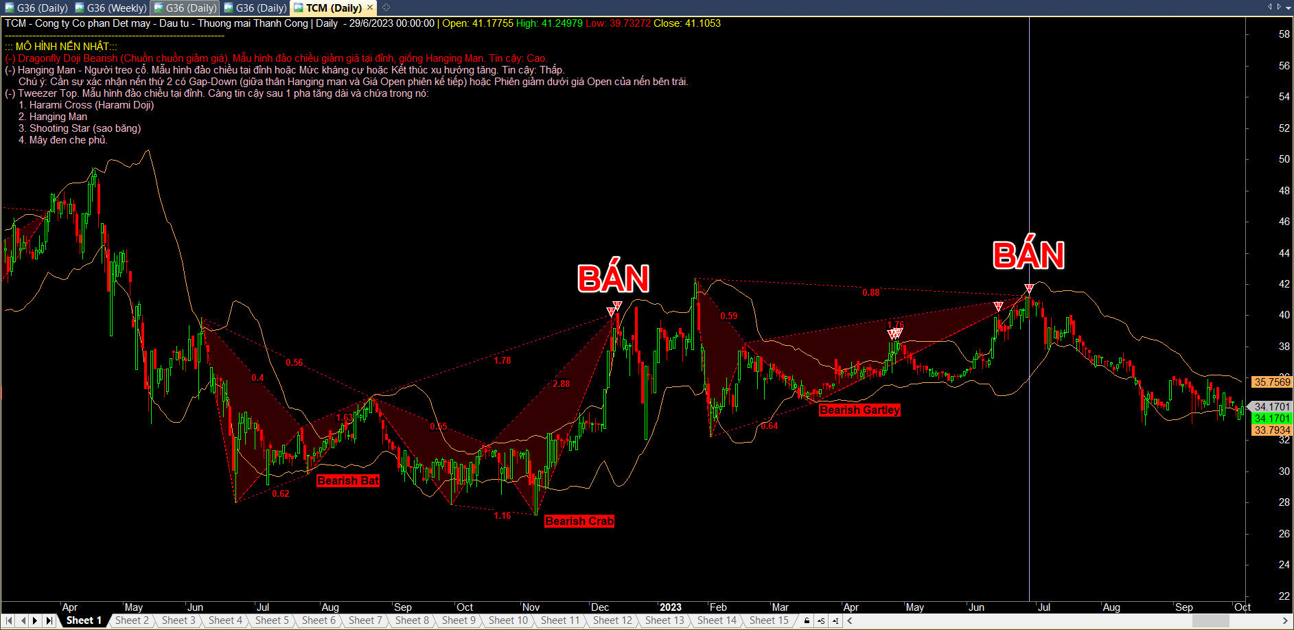- Hoặc dùng Fibonacci Retracement của sóng AD để xác định các mục tiêu xa hơn.