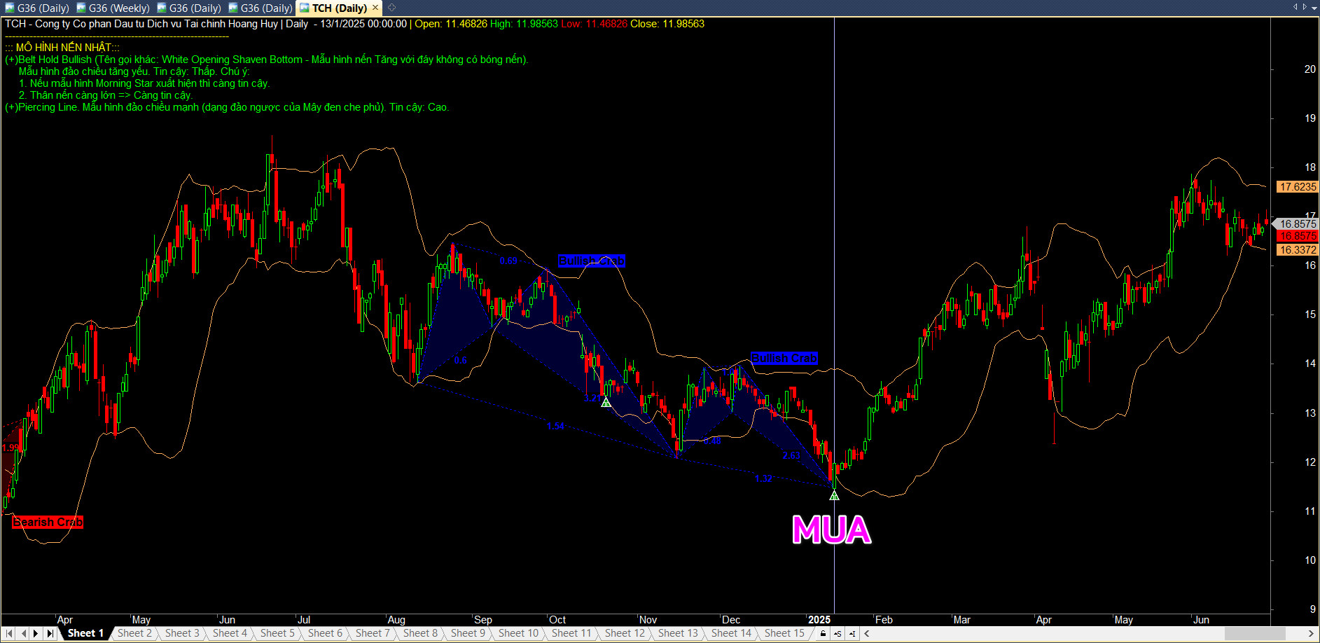 Sức mạnh thực sự của Harmonic Convergence Pro được bộc lộ khi cả hai chuyên gia cùng đồng thuận. Khi một mô hình Harmonic hoàn thành VÀ một mẫu hình nến đảo chiều mạnh mẽ xuất hiện TRONG CÙNG MỘT PHIÊN, hệ thống sẽ đánh dấu sự kiện này bằng những tín hiệu (Icon) rất trực quan.