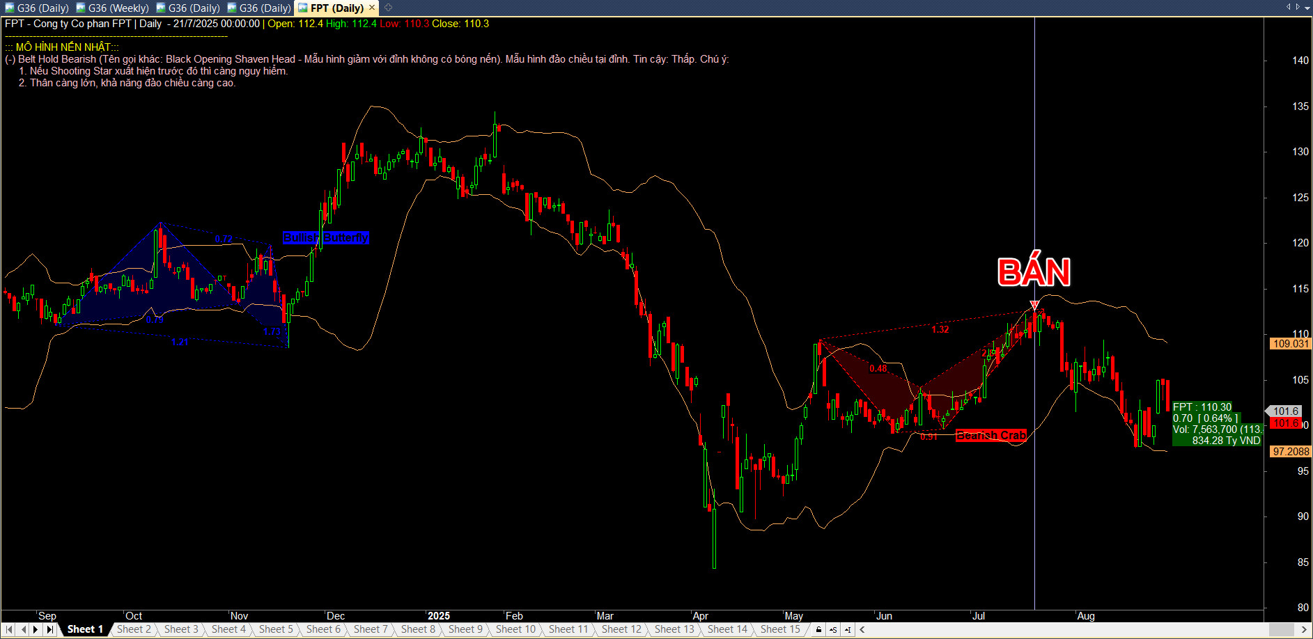 Bộ não Candlestick Pattern hoạt động như một tay bắn tỉa. Khi giá đã đi vào “vùng săn mồi” mà lớp Harmonic xác định, nó sẽ phân tích hành động giá của từng cây nến để tìm kiếm một tín hiệu đảo chiều ngắn hạn mạnh mẽ (Hammer, Engulfing, Doji…).