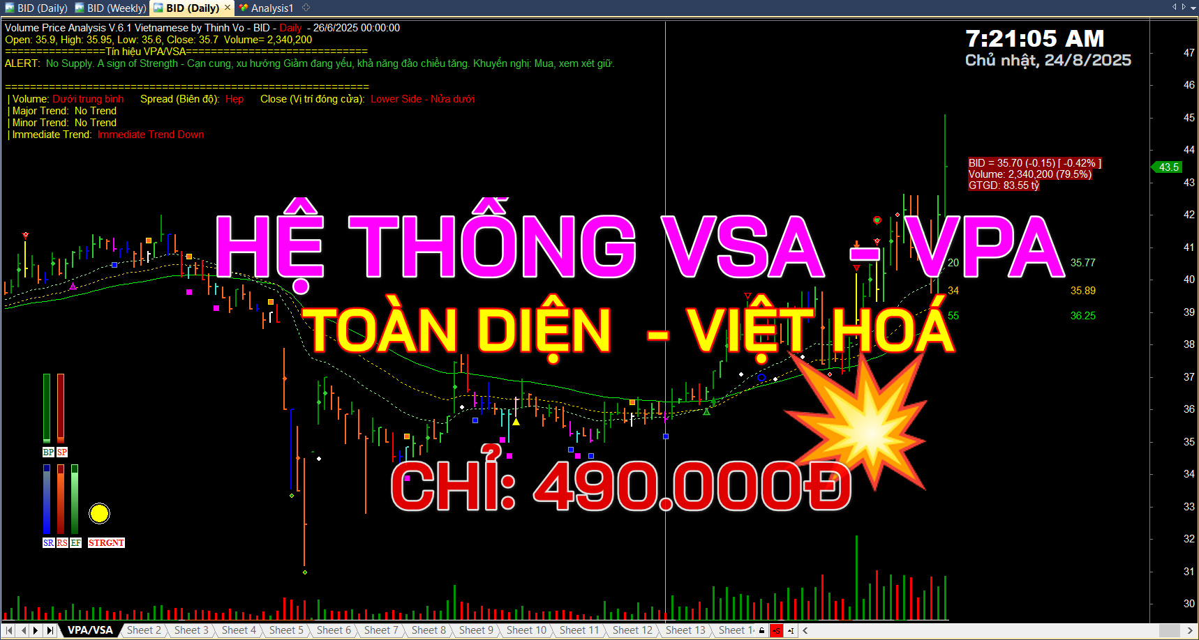 Bộ code này không phải là một “hệ thống thần thánh”, mà là một công cụ hỗ trợ cho những nhà giao dịch đã và đang tìm hiểu về trường phái VSA/VPA. Nó giúp bạn củng cố kiến thức, kiểm tra lại các phân tích của mình và đưa ra quyết định tự tin hơn.